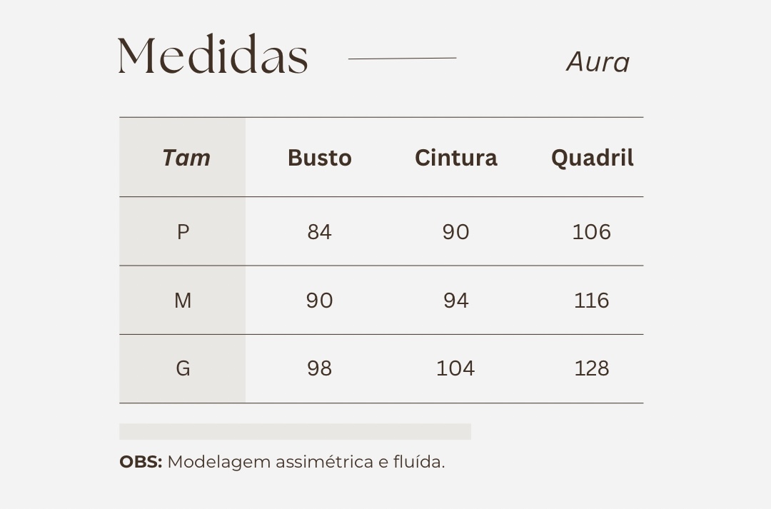 O Vestido Aura é confeccionado em tecido Ice Drop, ele entrega aquele caimento fluido e fresco que acompanha o movimento do corpo com naturalidade, ideal para quem busca beleza com conforto absoluto.